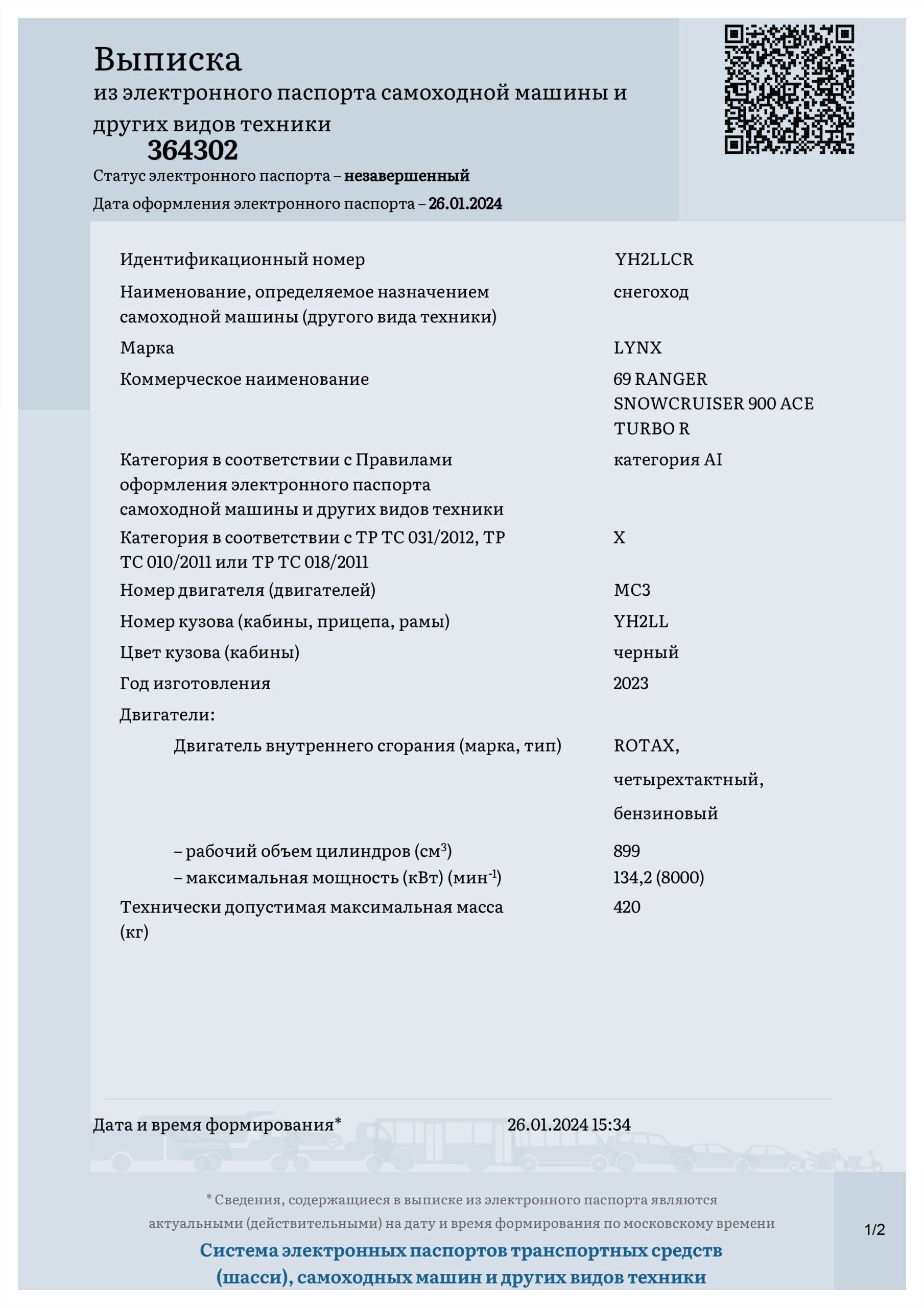 Электронный паспорт самоходной машины, образец