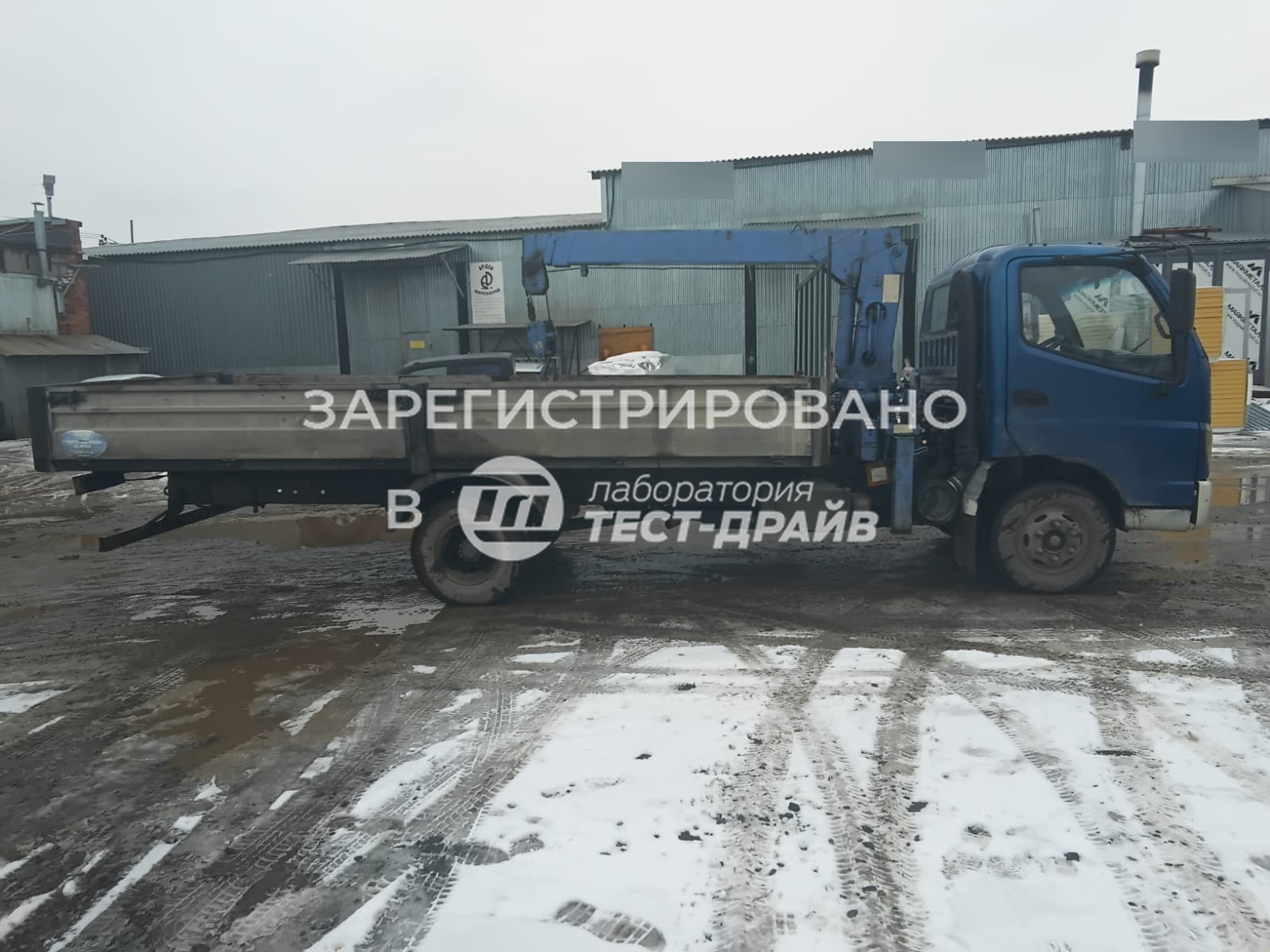 - Произведено усиление рамы швеллером и установка в передней части рамы (за кабиной) штатными крепежными элементами краноманипуляторной установки (КМУ) б/у (модель Maeda) в сборе с гидробаком и двумя выносными опорами (аутригерами) по аналогии с моделью BJ1069V06, согласно ОТТС № Е-RU.АЯ04.В.00207.